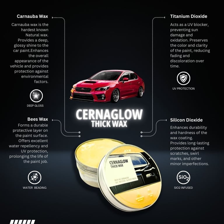 Revitalize your car's appearance with CernaGlow Carnauba Wax – where advanced science meets the art of detailing.CernaGlow
