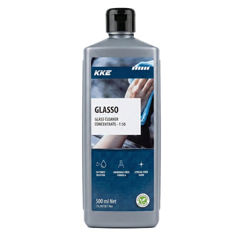 KKE Glasso - Glass Cleaner concentrate is easy to use, simply dilute with water as directed and apply to the surface with a cloth or spray bottle. It quickly cuts through dirt and grime, leaving your surfaces spotless and streak-free.